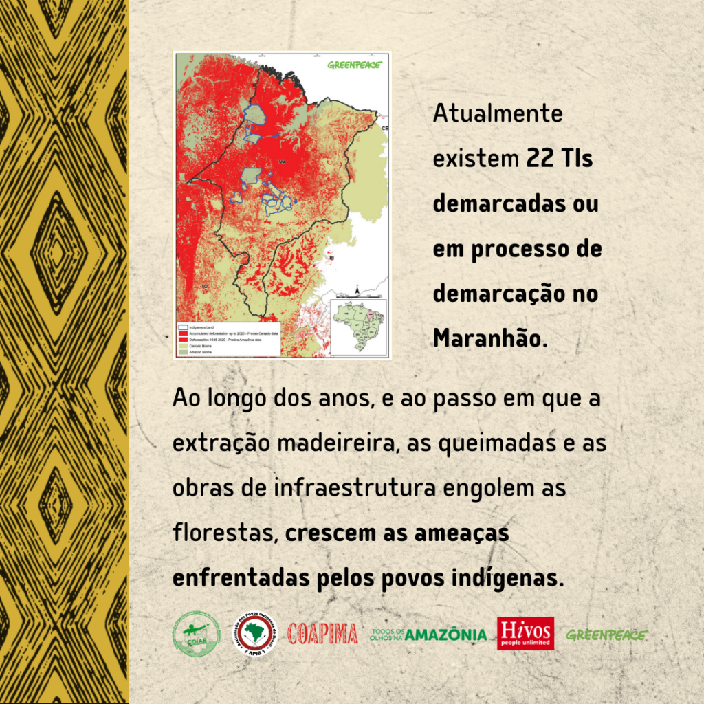 El informe final, que contó con el apoyo de la Coordinación de Organizaciones y Articulaciones de Pueblos Indígenas de Maranhão (COAPIMA), de Greenpeace Brasil y de la Articulación de Pueblos Indígenas de Brasil (APIB), también revela que la violencia contra los pueblos indígenas en el estado de Maranhão es el resultado de una falta de estructura estatal para la protección de los derechos indígenas y de un discurso de violencia institucionalizada en los conflictos de tierras entre los pueblos originarios y los madereros que ocupan sus territorios tradicionales, áreas de interés para la agroindustria.